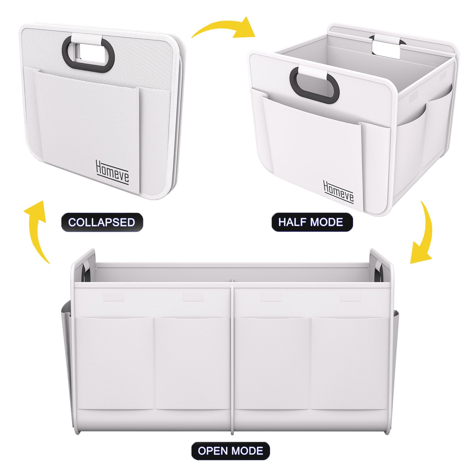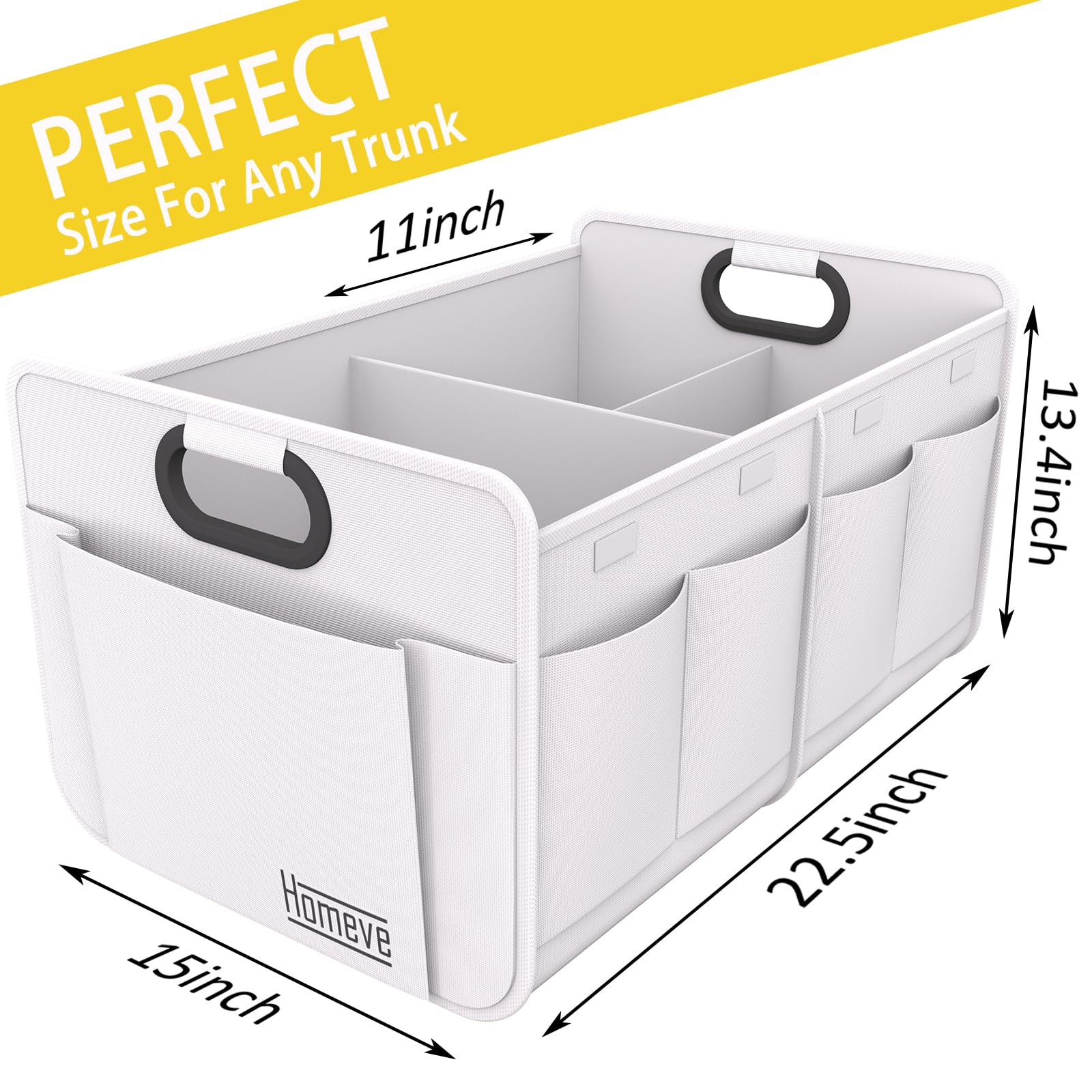 Homeve Trunk Organizer, Car Storage, Reinforced Handles, Collapsible Multi-Compartment, Foldable, Waterproof, Sturdy, 600D Oxford Polyester For Car, SUV, Mini-Van, White