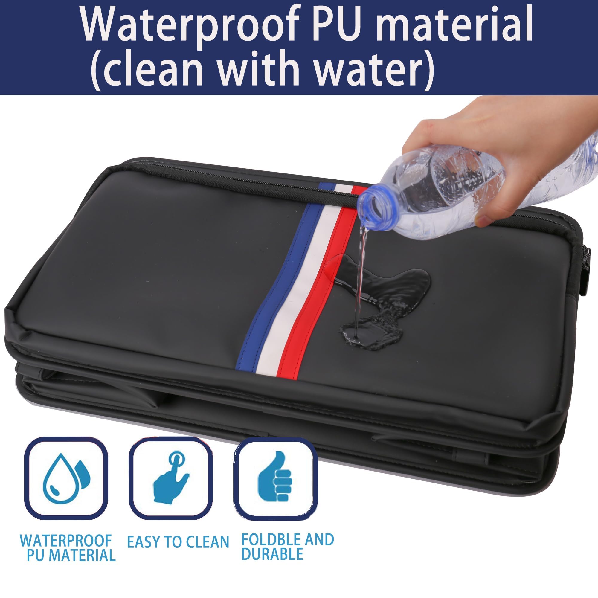 • WATERPROOF MATERIAL: The organizer is made of durable waterproof PU polyurethane material, water won't bead on it, one wipe and it's clean, easy to install and clean