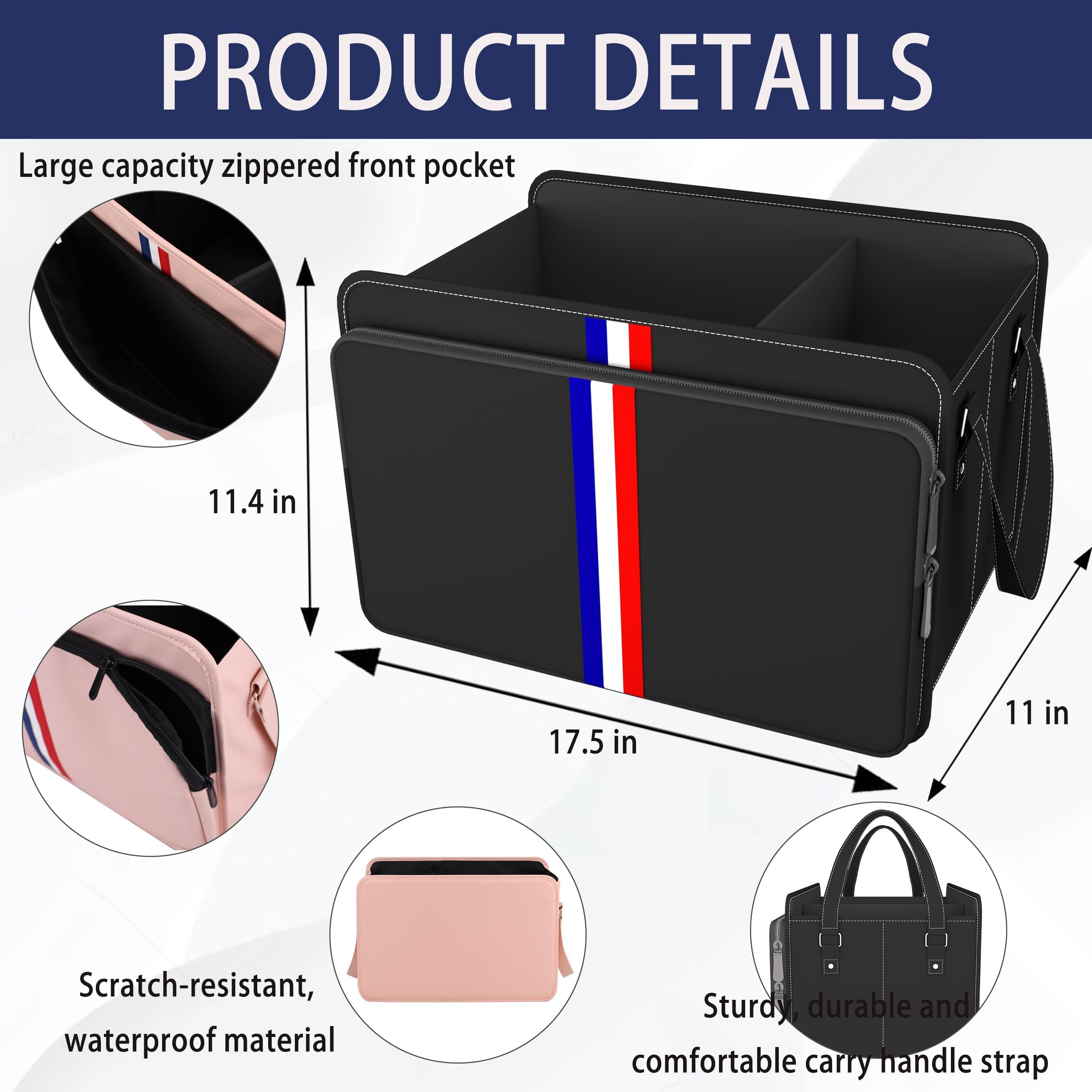 • UNIQUE DESIGN: This car trunk organizer is reinforced at the carrying handle to protect your hands and make it easy to move around; PERFECT SIZE: 17.5in x 11 inx 11.4 in, use it to organize and secure your trunk items, prevent items from sliding or spilling