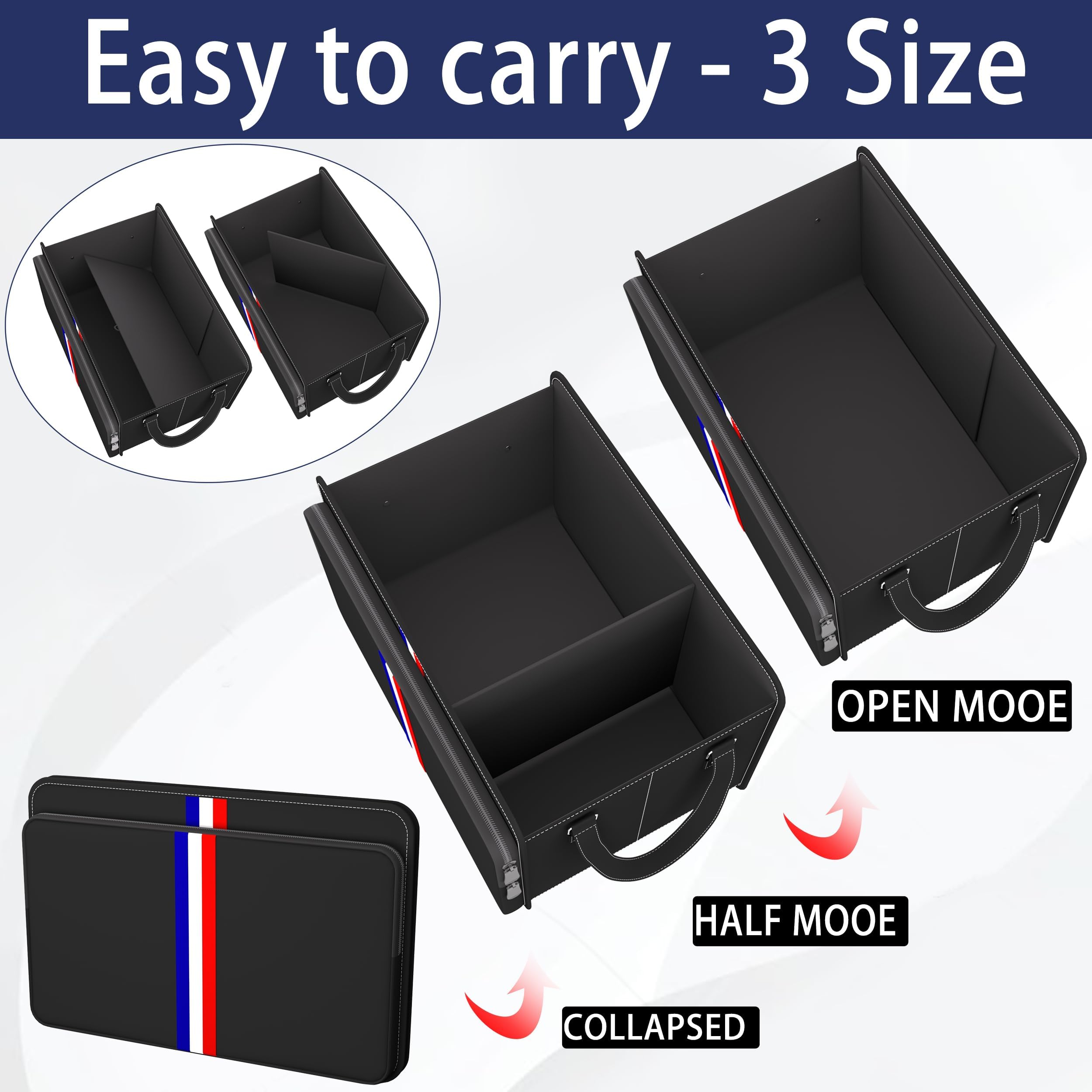 • LARGE CAPACITY SPACE ORGANIZER: It has 3 compartments with removable dividers on the bottom and sidewalls, which can be adjusted in size to fit large or small car spaces, and can be folded up when not in use, and there is 1 extra large-capacity zippered pocket for quick access to items