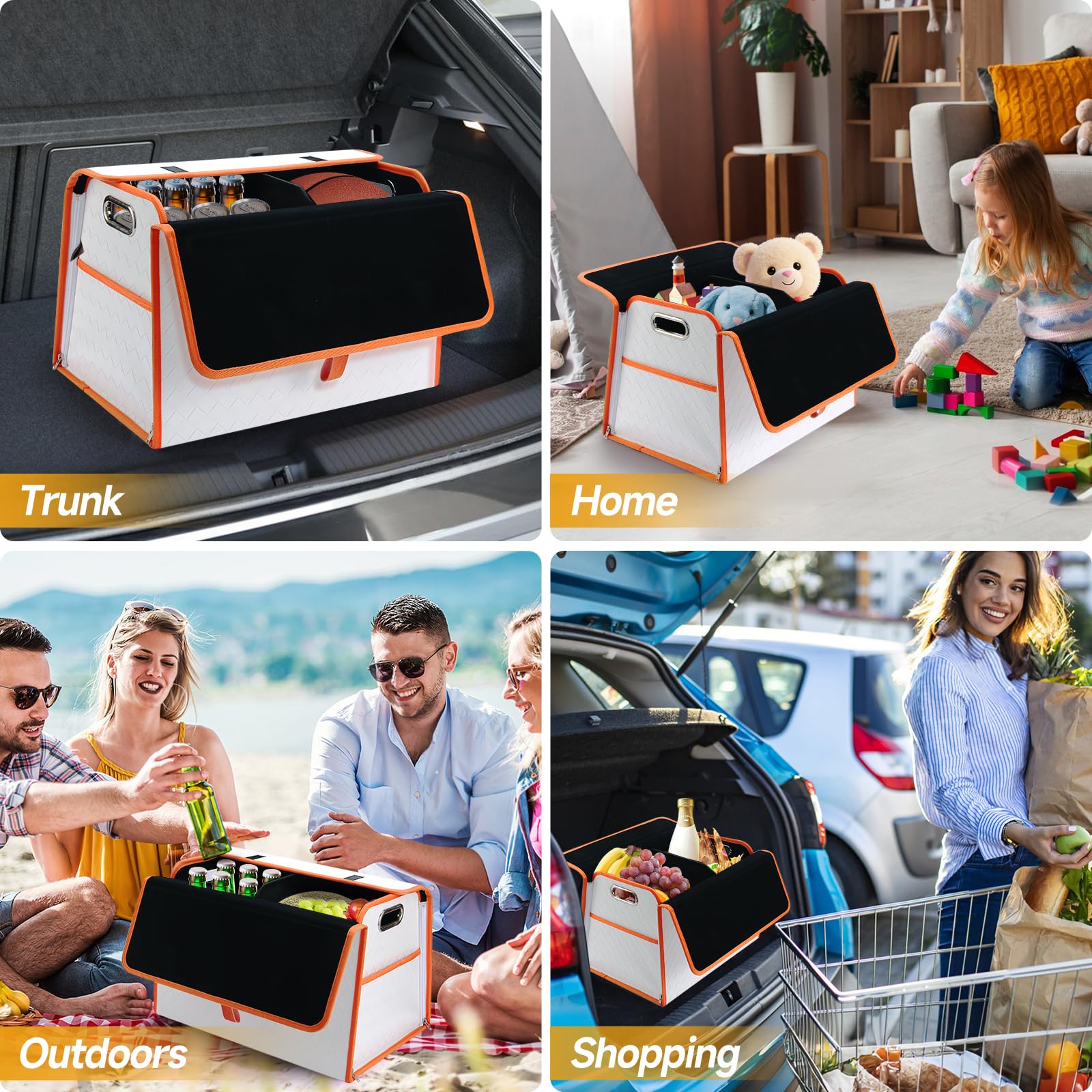 • [Collapsible , Adjustable] car trunk organizer space-saving design, creative design which will fold when not in use, Through the zipper and internal removable compartment can meet various storage requirements